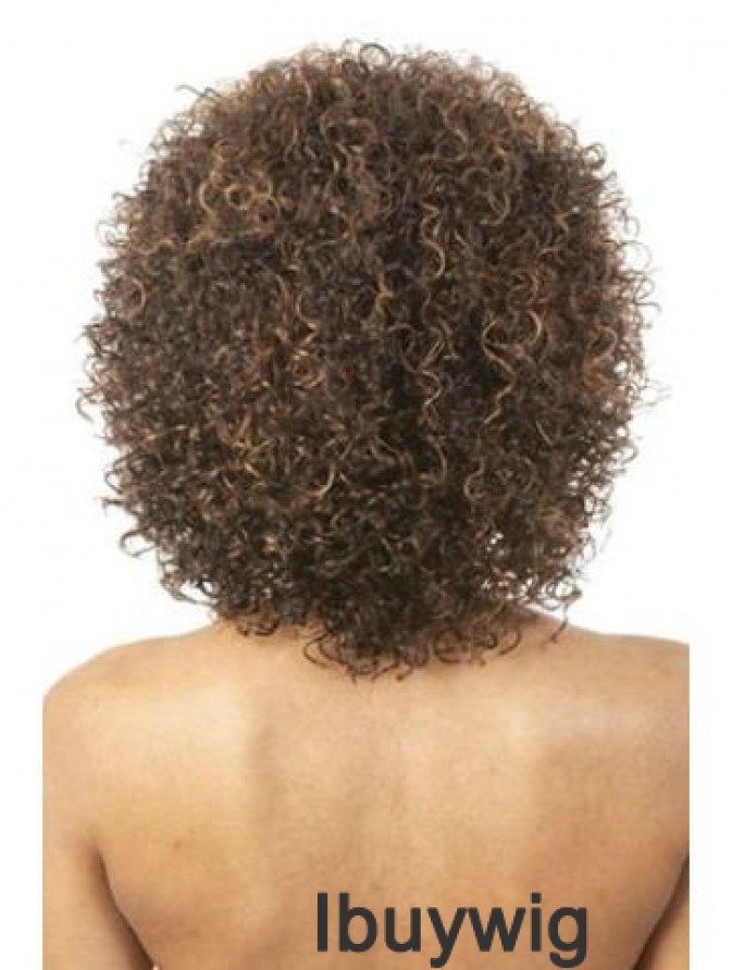 Amazing Brown Shoulder Length Without Bangs Curly Glueless Lace Front Wigs