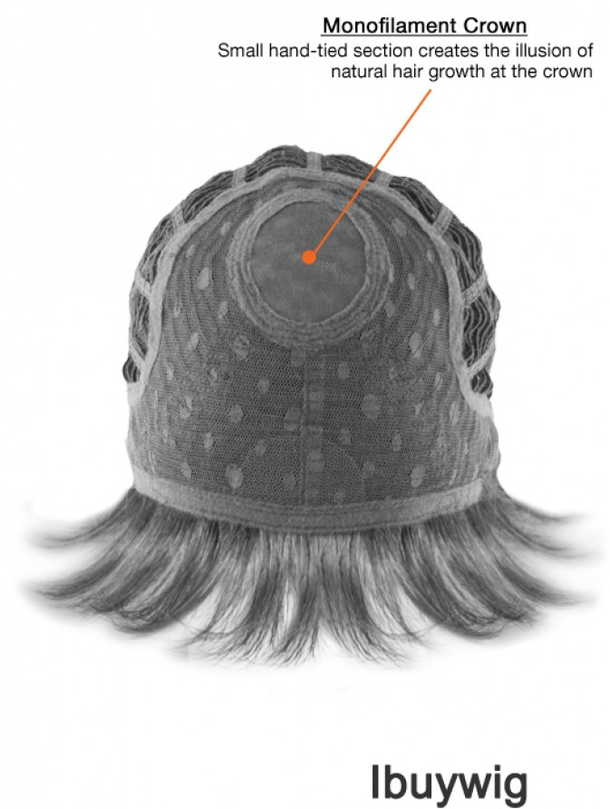 The Crown area has fine wefts allowing for the air to breathe, which has then been delicately covered with sheer netting for structure & comfort. There is also a soft, finishing strip at the edge of the wig, so that it will sit comfortably against your skin. At the crown area is a circular section of sheer MONOFILAMENT. This means that wherever you part the wig at this section, it will give the impression that the hair is coming from your own scalp.