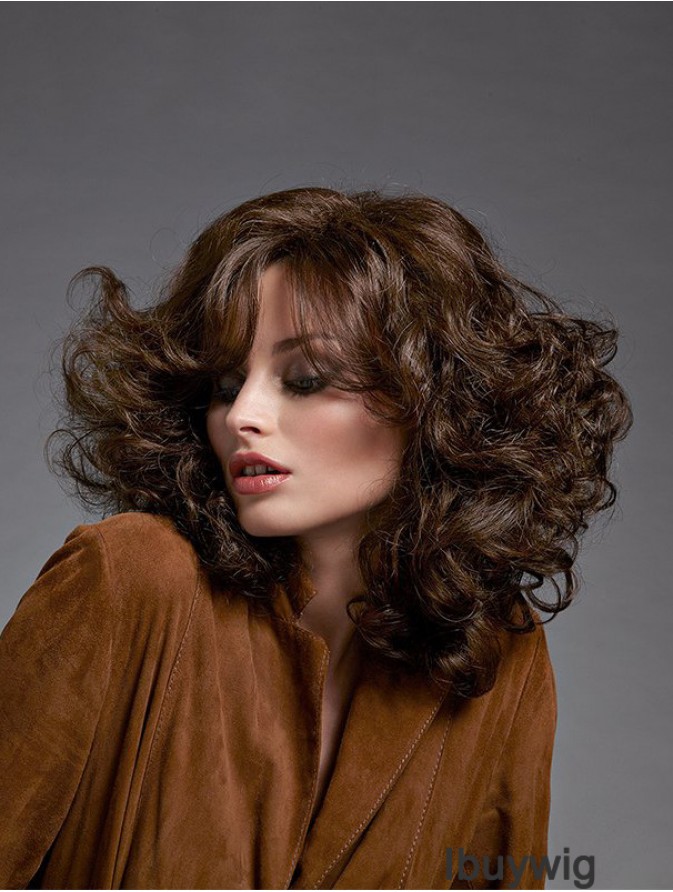 Sleek Brown Chin Length With Bangs Curly Glueless Lace Front Wigs