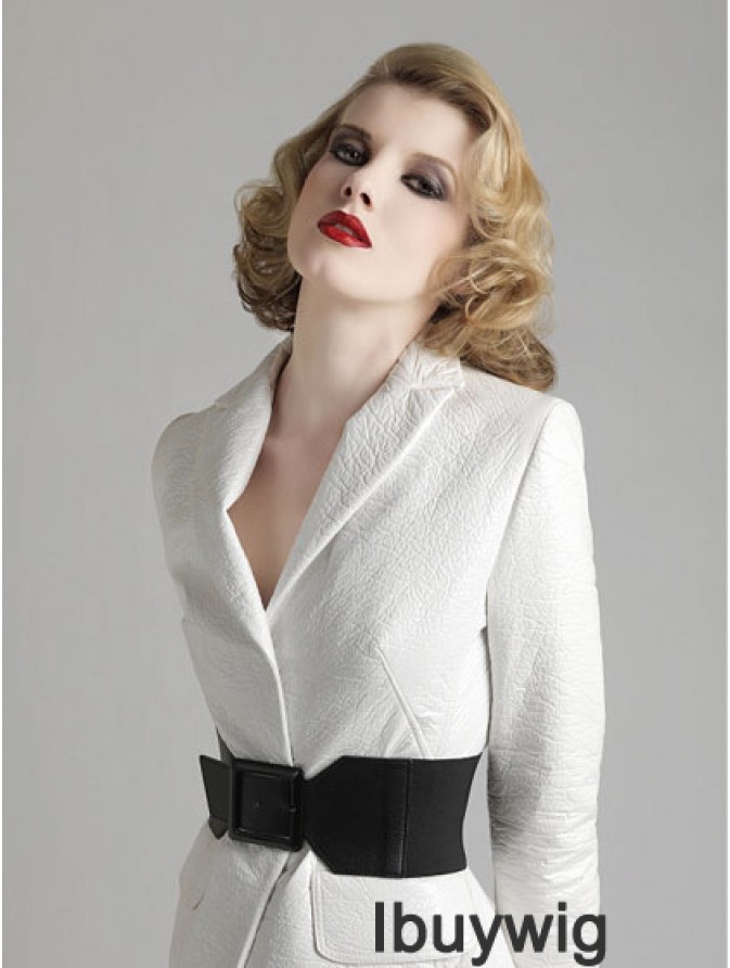 Shoulder Curly Remy Human Classic Blonde Monotop Wigs