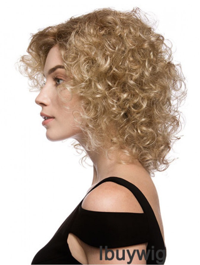 Blonde Shoulder Length High Quality Curly Layered Lace Wigs