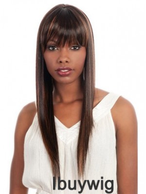Ideal Brown Straight With Bangs Monofilament Long Wigs
