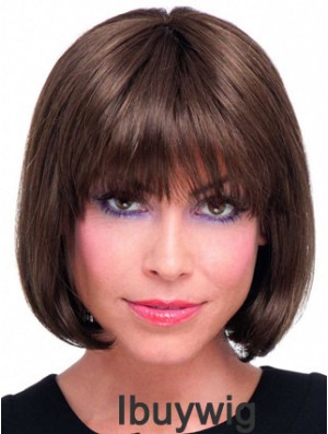 Capless Chin Length Brown With Bangs Kinky Straight Lace Wig UK