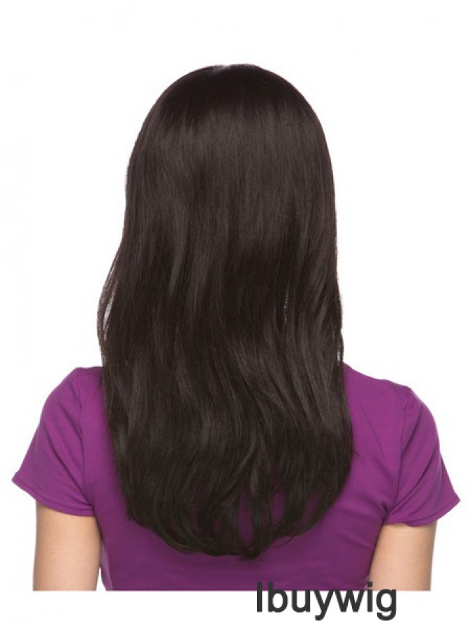 Black 14 inch Cheapest Long Straight Without Bangs Lace Wigs