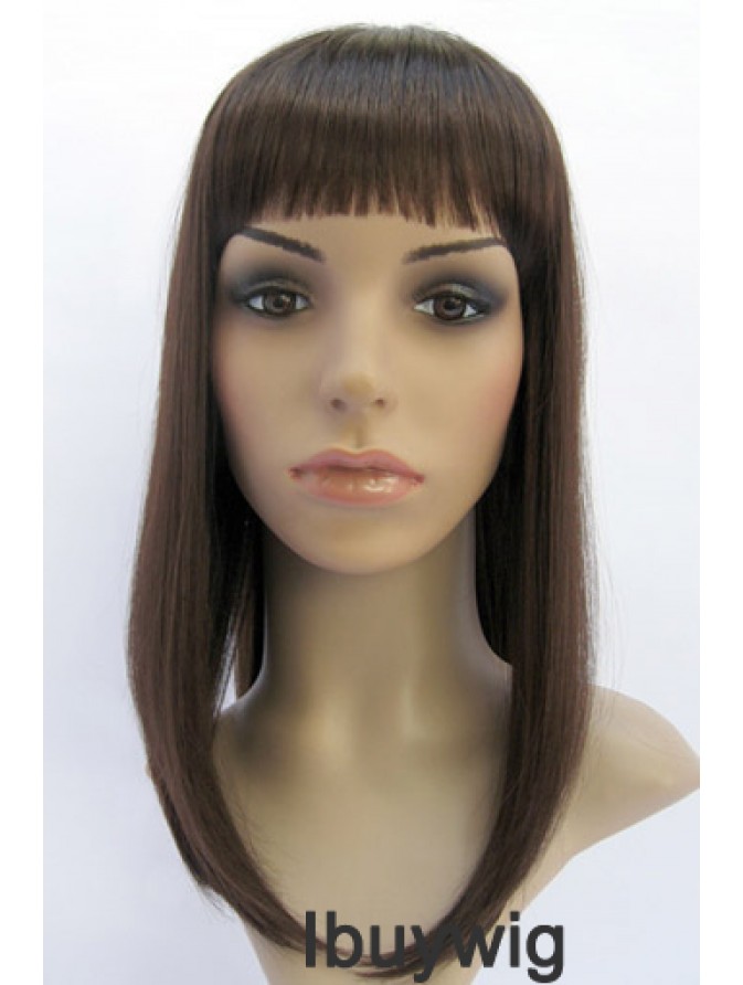 16 inch Brown Shoulder Length Layered Straight Natural Lace Wigs