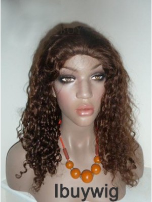 Beautiful Flexibility Brown Long Curly With Bangs 18inch Lace Front Mono Human Hair Wigs